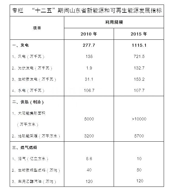 ——2020年。新能源和可再生能源发电装机容量比“十二五”末增长近2倍,力争达到3010万千瓦,其中,风电1400万千瓦,太阳能发电1000万千瓦,生物质发电230万千瓦,水电110万千瓦,核电270万千瓦;发电装机容量占省内电力装机容量的比重力争达到22%;年实现发电量620亿千瓦时。