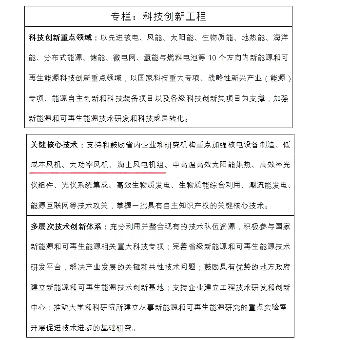 发挥我省新能源和可再生能源既有技术和产业优势,紧跟国内外发展趋势,加快推进重点领域科技创新,着力突破关键核心技术;适应新产业、新业态、新模式成长的规律和需求,依托“互联网+”,搭建大中小企业、科研院所、创客等协同创新平台,探索建立多层次的技术创新体系,逐步形成具有自主知识产权的新能源和可再生能源产业创新体系,以科技创新支撑新能源和可再生能源产业发展。