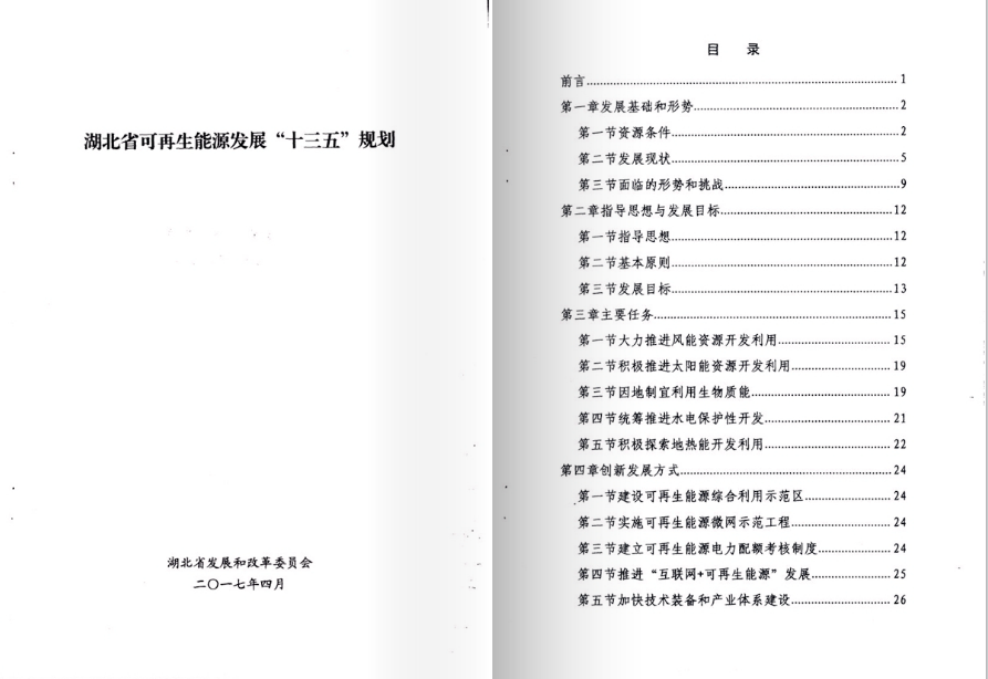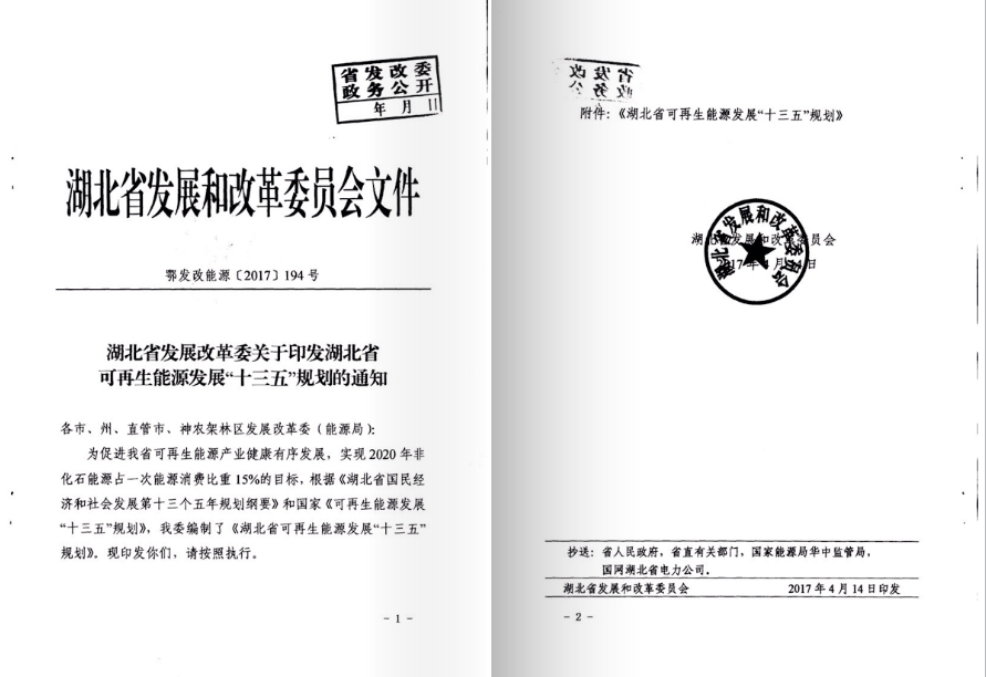近日,湖北省发改委印发《关于印发湖北省可再生能源发展“十三五”规划的通知》(鄂发改能源〔2017〕194号)。