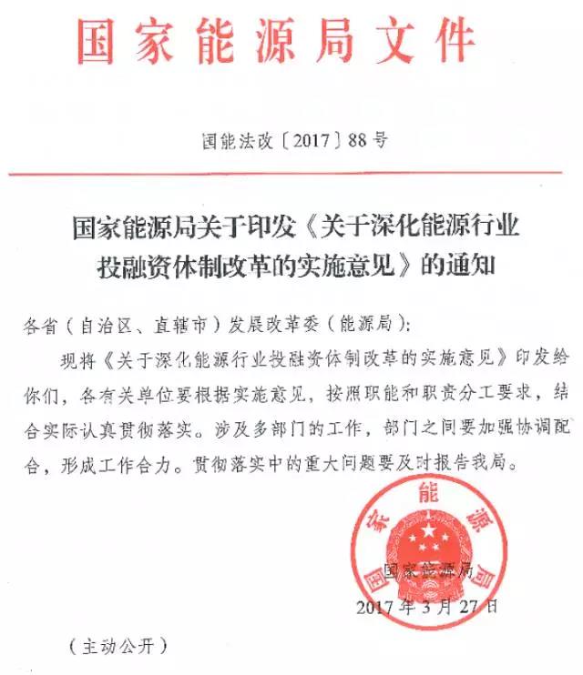 国家能源局关于深化能源行业投融资体制改革的实施意见