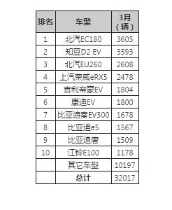 北汽EU260是去年市场上竞争力最强的车型之一,3月售出2608辆,正在恢复增长势头。