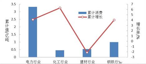 能源需求状况。全国商品用煤一季度煤炭消费同比呈增长势头。分行业来看,电力、化工、钢铁行业的煤炭消费呈正增长,建材行业的煤炭消费呈负增长。