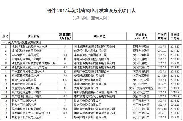 湖北省能源局关于公布2017年风电开发建设方案的通知