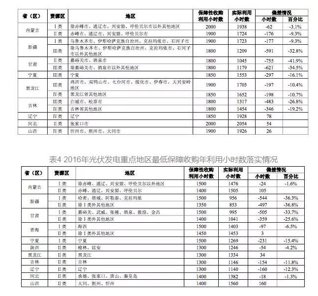 能源局通报2016全国风电、光伏最低保障收购数据(附全文)