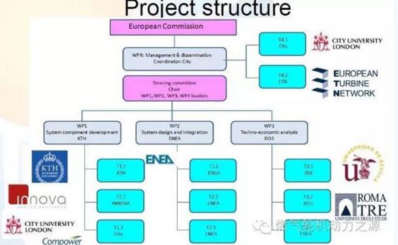 Abdulnaser Sayma教授的项目分 为三个阶段:(1)部件开发(2)系统设计和集成(3)技术经济性分析,出了主导该项目外,CITY大学还在瑞典Compower公司的支持 下开展微型燃机设计开发、建造和试验。其他合作者还有瑞典KTH皇家理工学院和意大利Innova等,共计8个合作伙伴,来自5个不同的 国家。整个项目耗资580万欧元,其中442万元源自欧盟资助。