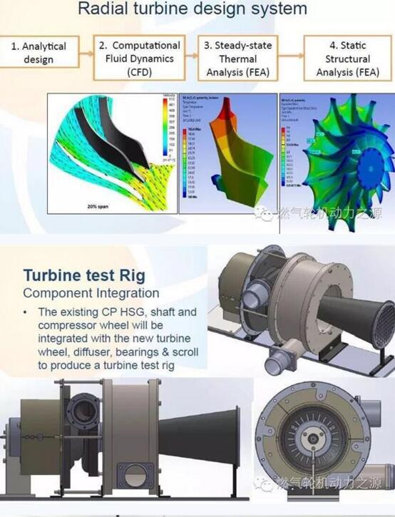 该微型燃机采用单级设计,1级向心透平和1级离心压缩机组成。透平制造使用了Selective Laser Melting选择性激光熔化技术,类似于3D打印,在设计中则用到了CFD和FEM分析技术。