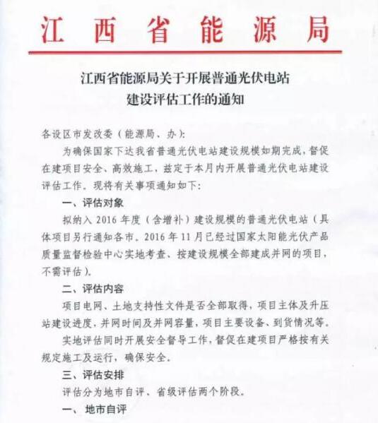 江西省能源局关于开展普通光伏电站建设评估工作的通知