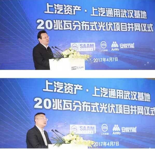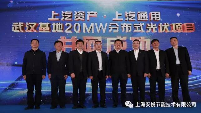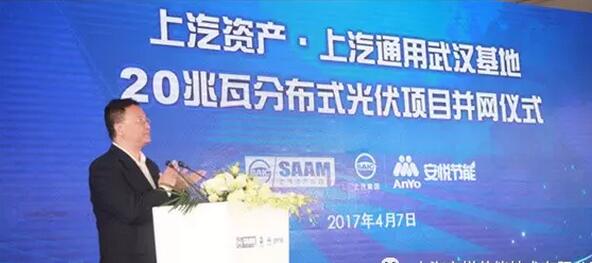 4月7日,华中地区最大光伏建筑一体化项目---上汽资产·上汽通用武汉基地20MW分布式光伏项目并网仪式在武汉市江夏区举行。武汉市副市长程用文、上汽集团总裁助理蔡宾、上汽通用总经理王永清出席并网仪式。