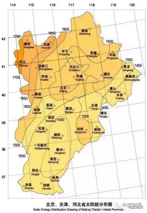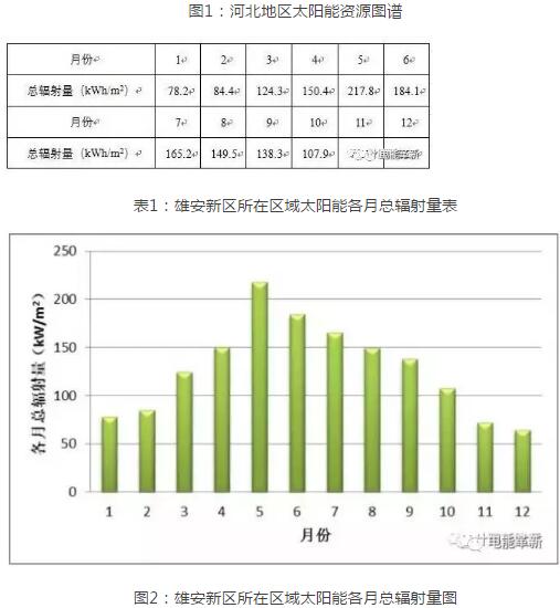 2017年4月1日 ,中共中央、国务院决定再此设立的国家级新区由河北省保定市所辖雄县、容城、安新3县组成。根据国家气象局太阳能资源分布图谱(见下图),年总辐射量在1450~1500kWh/m2,属于太阳能资源“很丰富区”。