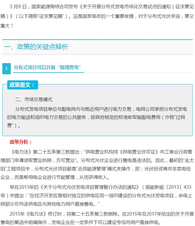 政策比着看:“隔墙售电”给光伏项目发展带来的机遇