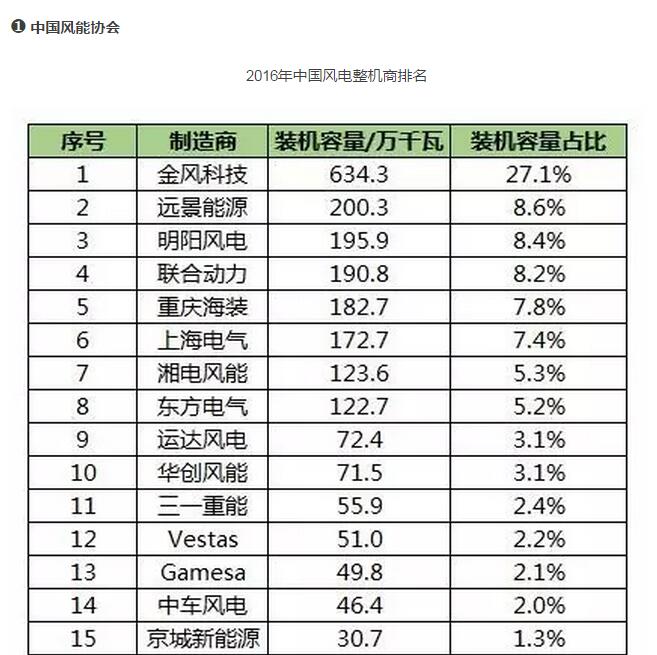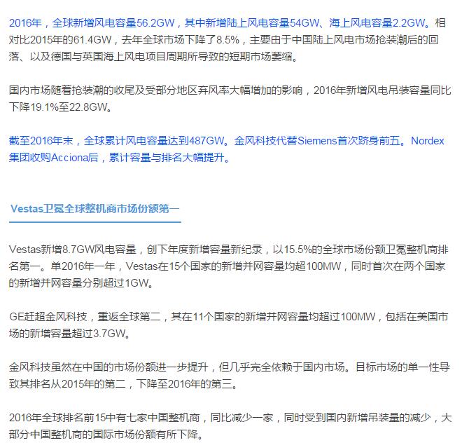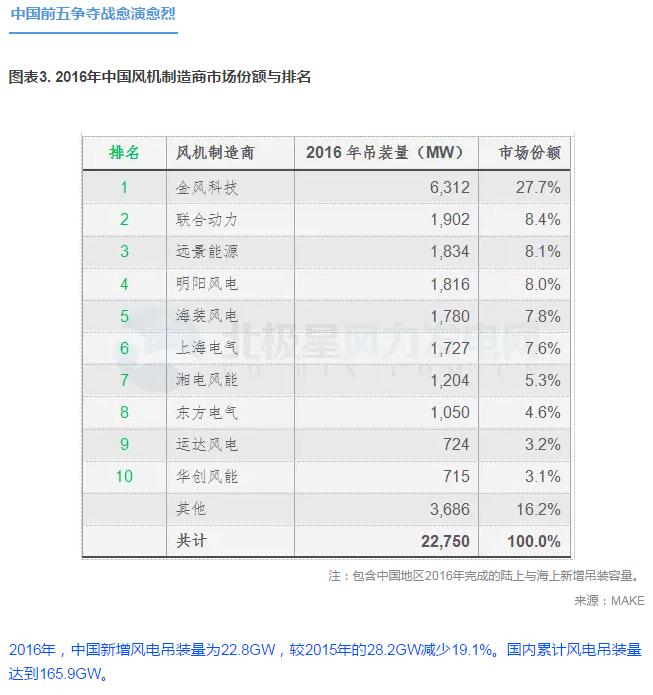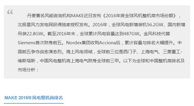 MAKE重磅发布2016全球 & 中国风电整机商排名!(附数据分析)