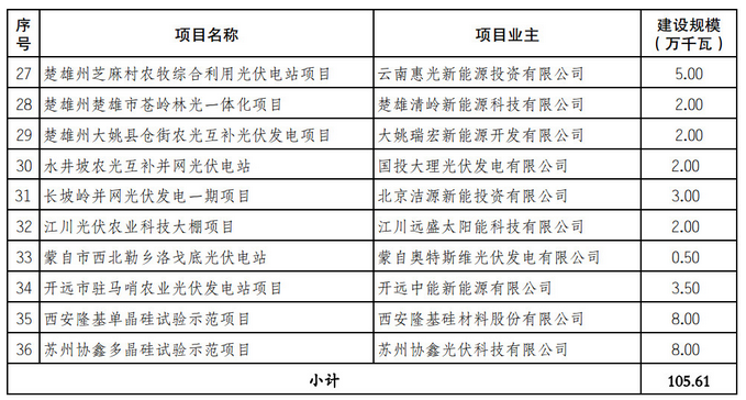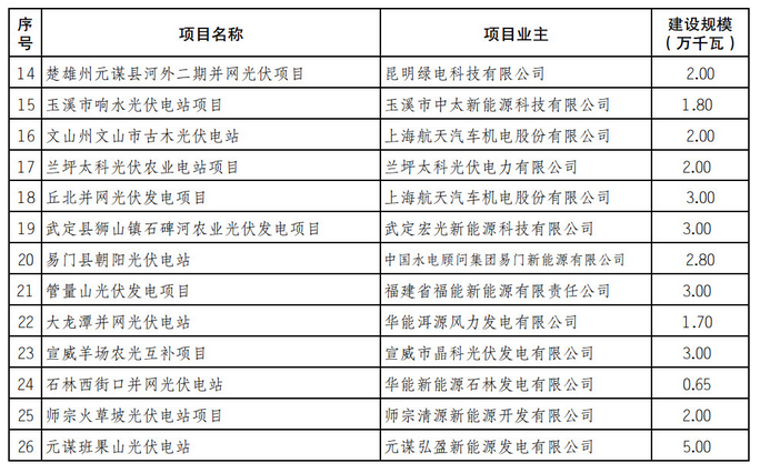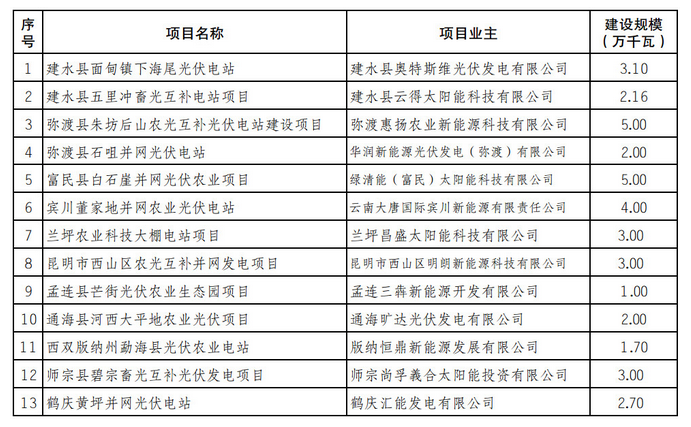 云南公布2017年光伏发电新增建设规模项目清单的通知