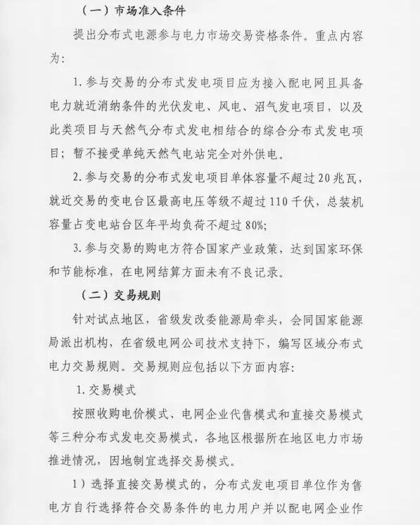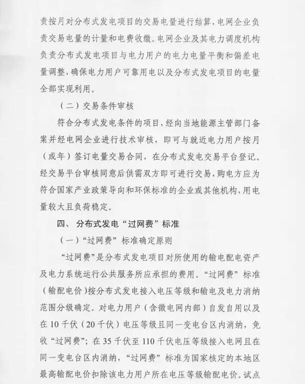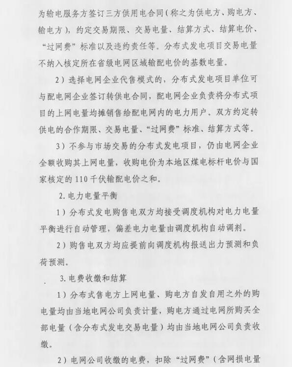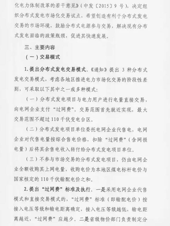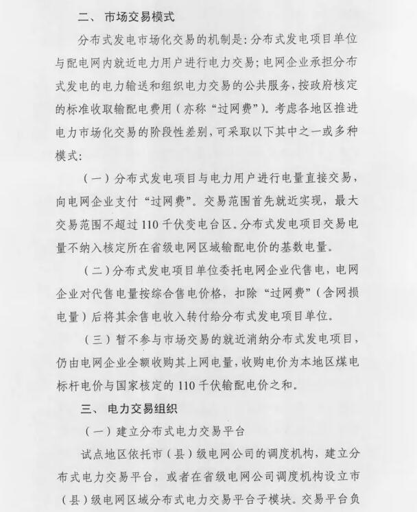 1、市场化交易机制:分布式发电项目单位与配网内就近用户进行电力交易,电网企业收取过网费。