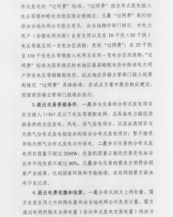 分布式发电市场化试点征意见,可就近与用户交易