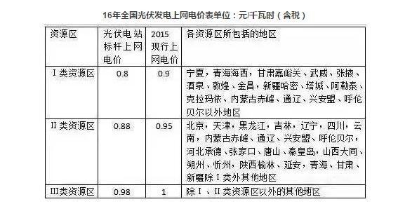 注:1.2016年1月1日以后备案并纳入年度规模管理的光伏发电项目,执行2016年光伏发电上网标杆电价,2016年之前备案并纳入年度规模管理的光伏发电项目但于2016年6月30日之前机组仍未全部投运的,执行2016年上网标杆电价。