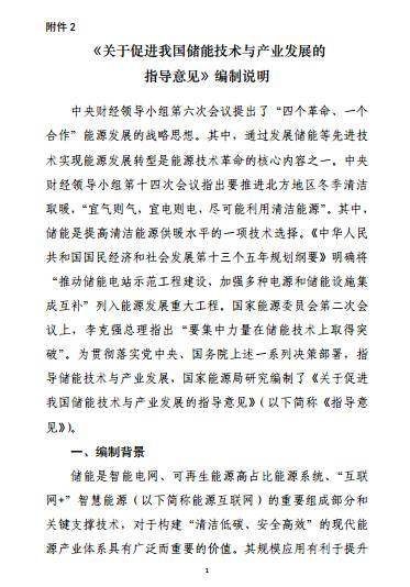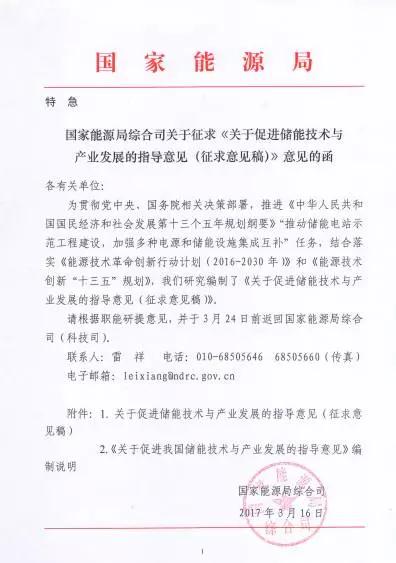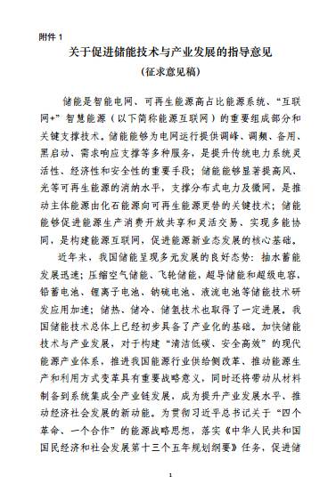 近日,国家能源局印发《关于促进储能技术与产业发展的指导意见(征求意见稿)。下为意见全文