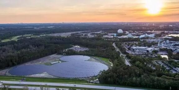 电站坐落于美国加州附近弗罗里达华特迪士尼乐园,由杜克能源建设,占地面积22英亩(约9万平方米),包含大约48000块太阳能电池板,规模约5MW。所有太阳能电池板排成有迪士尼标志性的米老鼠形状。此光伏电站从2016年3月开始运行,为华特迪士尼世界提供电力。