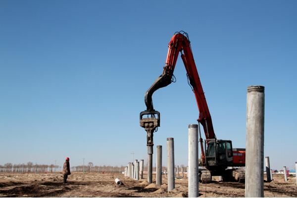 贫瘠的盐碱地上机器轰鸣,一排排整齐的水泥桩基巍然伫立。这是镇赉县镇赉镇架其村光伏扶贫电站施工现场。该电站是镇赉县首个开工建设的村级扶贫电站,设计装机容量1.5兆瓦,安装315瓦多晶硅组件4800块,年发电量225万度,占地4公顷。目前,已完成打孔、引桩600个,预计2017年6月末即可并网发电。这座电站由镇赉镇架其村、长安村、西乃力村集中联建,项目还规划以合作社形式在光伏板下养殖生态鸡1万只,依托首农集团对外销售,预计仅养殖一项年获利可达到15万元,实现3个贫困村每户增收300元。