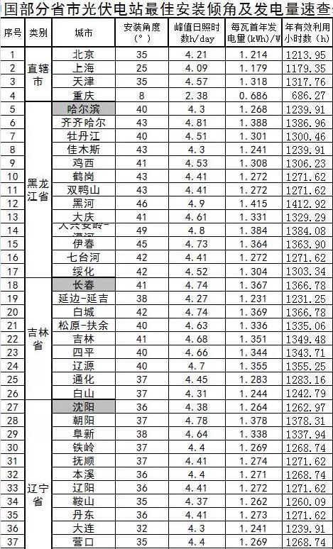 360个市县光伏电站最佳倾角及发电量汇总!