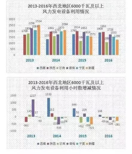 综合数据显示,西北地区已经成为我国风电设备平均利用小时数下滑最为严重的地区。除了西藏之外,其余省份均已经连续三年大幅度下滑。
