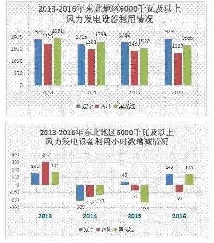 综合数据显示,2016年风电消纳状况明显优于2015年,除吉林外,辽宁、黑龙江风电设备平均利用小时数均有一定幅度的提升,辽宁省风电设备平均利用小时数高达1929小时,高于全国平均水平。