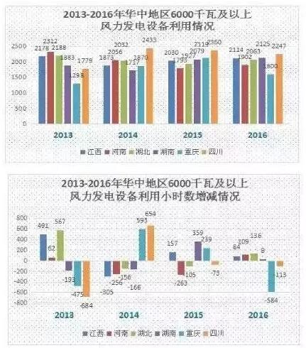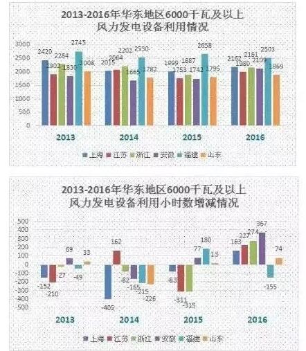 该区域风电设备平均利用小时数优于2015年,仅仅福建省的风电设备平均利用小时数出现了下滑。由于该地区风电场距离负荷区较近,2016年华东地区风电设备平均利用小时数总体均高于全国平均水平。