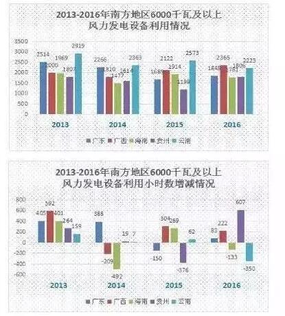 数据分析显示2017年,在相关政策的支持下,广东省风电处于负荷区,其风电设备平均利用小时数有一定的上浮空间,而云南地区在外送通道阻塞情况下,风电消纳存在压力,风电设备平均利用小时数恐进一步下滑。