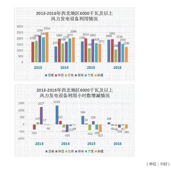 综合数据显示,西北地区已经成为我国风电设备平均利用小时数下滑最为严重的地区。除了西藏之外,其余省份均已经连续三年大幅度下滑。