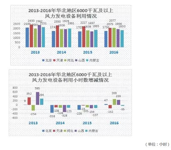 2016年,国家能源局暂缓三北地区新增风电开发建设方案,随着后续一批风电场陆续建设、并网,河北、山西、北京、天津风电设备平均利用小时数有一定上升空间,而内蒙古地区风电还将存在消纳的压力。