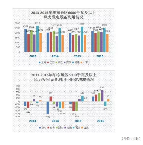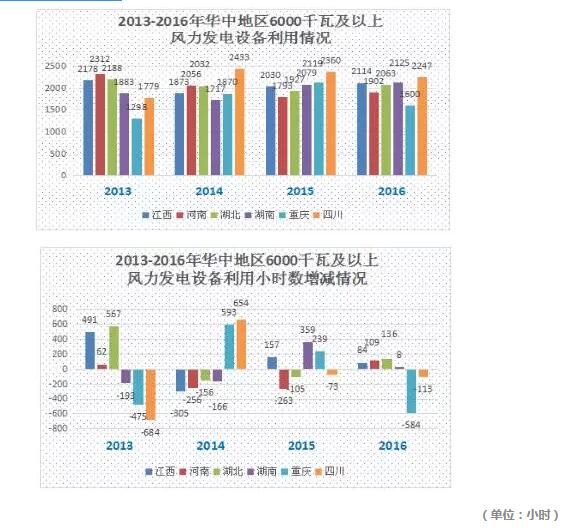 该区域风电设备平均利用小时数优于2015年,仅仅福建省的风电设备平均利用小时数出现了下滑。由于该地区风电场距离负荷区较近,2016年华东地区风电设备平均利用小时数总体均高于全国平均水平。