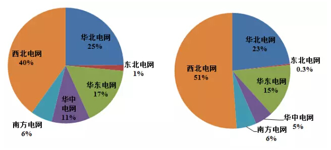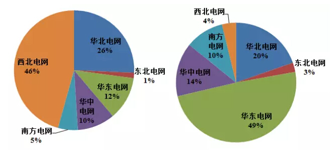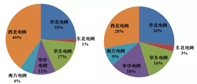 从上图可以看出,西北电网累计装机占比40%,而新增装机占比仅占28%;华中电网累计装机占比11%,而新增装机占比则为16%;除此之外,南方电网、东北电网的新增装机量也明显高于累计装机量。