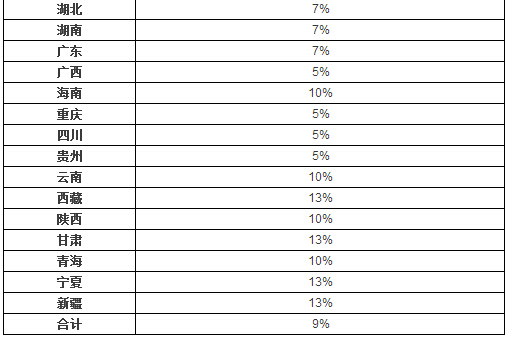 山西、西藏、新疆、辽宁、吉林、黑龙江、河北7省高于5%,在5.2%~9.9%之间;