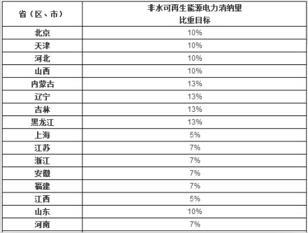 其他省份均低于国家“非水可再生能源配额”的最低标准。