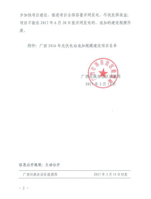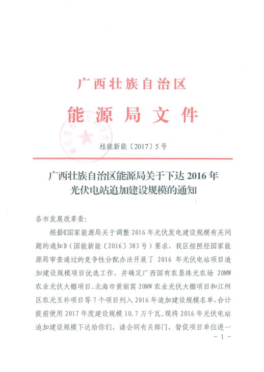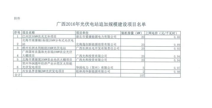 7个项目 107MW,广西能源局下达《2016年光伏电站追加规模的通知》