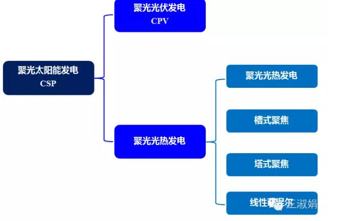 聚光太阳能发电(CSP)技术通过聚光器将阳光聚起来发电,其技术路线主要包括聚光光伏发电(CPV)和聚光光热发电,前者在聚光处进行光伏转化来实现发电,后者利用集热器产生热空气或热蒸汽,用传统的电力循环发电。