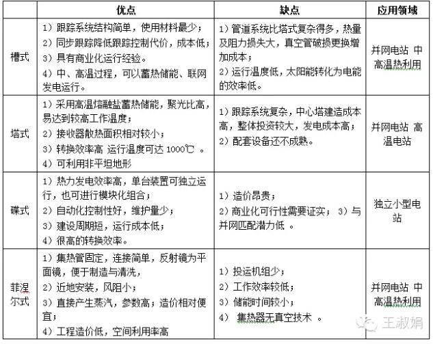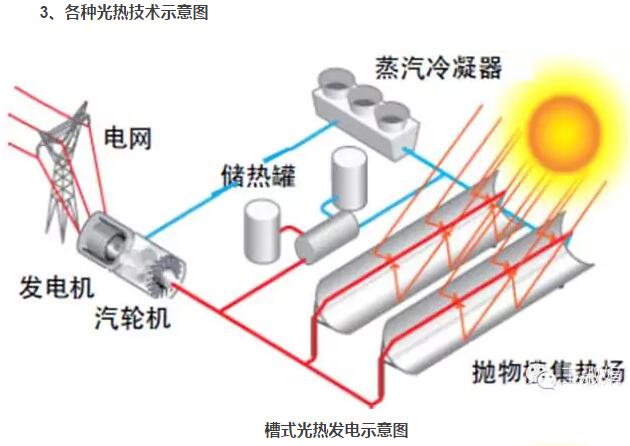 上述四种方式中,槽式和塔式是目前两种主流的光热利用技术。就目前而言,槽式技术更为成熟,塔式技术更具发展潜力。