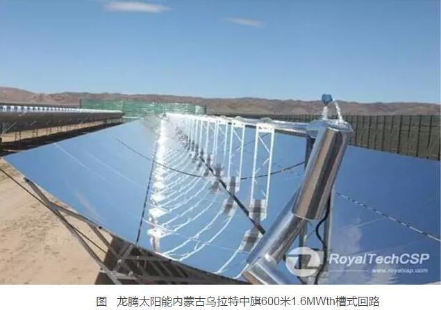 该项目为常州龙腾太阳能热电设备有限公司建设的槽式示范回路;2013年6月,该示范回路实现了商业电站典型工况下的稳定运行,到目前为止已连续运行一整年。