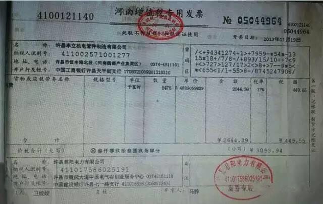 上图为“北京君阳投资有限公司”在2013年的11月份给用户开的售电发票