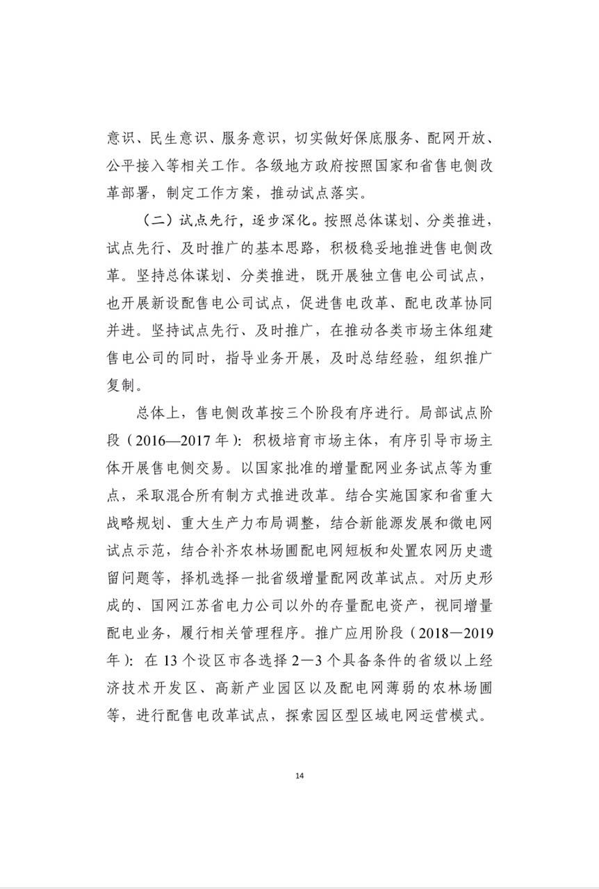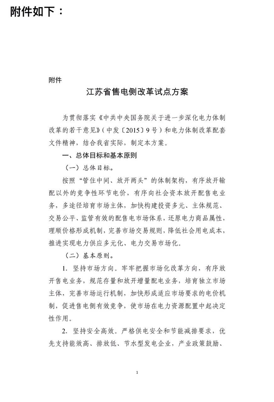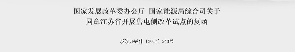 一、同意江苏省开展售电侧改革试点。原则同意你省对试点工作的总体考虑。经征求有关部门意见汇总修改形成的《江苏省售电侧改革试点方案》附后。