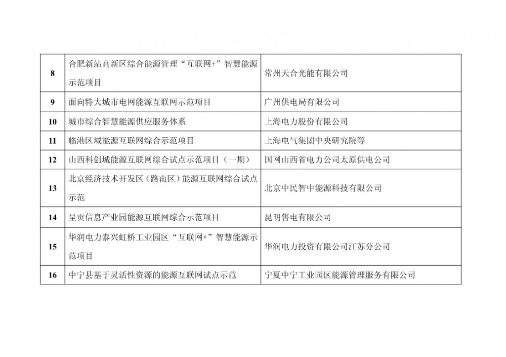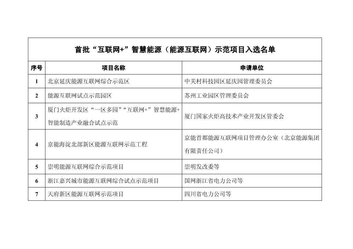 附件:首批“互联网+”智慧能源(能源互联网)示范项目入选名单