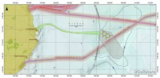 • 位于苏格兰阿伯丁东北方向的英国北海沿岸,距离岸边25公里,水深95~120米,风电场位于两条油气管线之间;