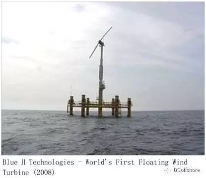 • Blue H第一个浮式风机80Kw(2008年),看上去像是半潜形式的。