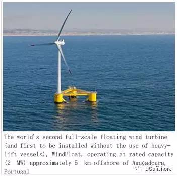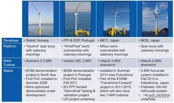 • 2013年日本也造了两个样机,一个是半潜形式、风机中置2Mw浮式风机,另一个是Spar形式的2Mw浮式风机。