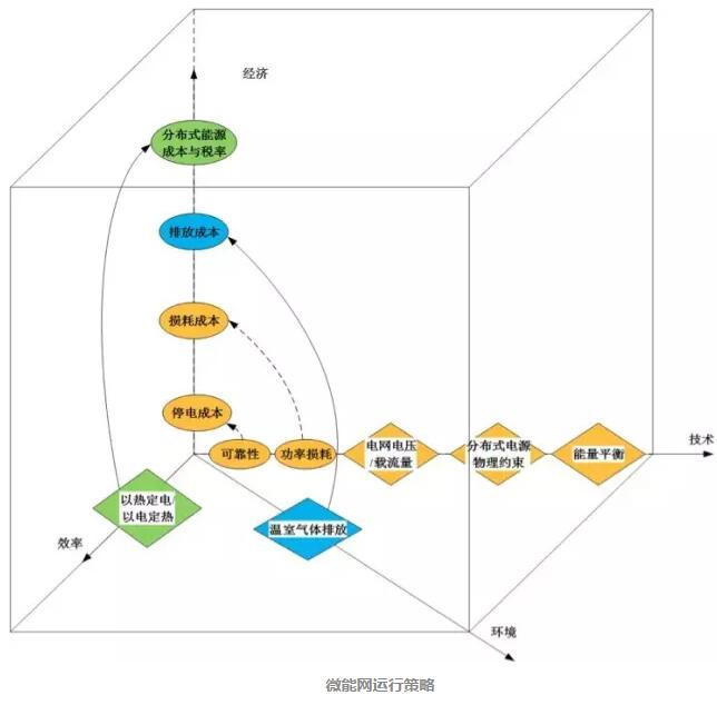 在该项目中,针对能源系统或配电网运营商、分布式能源所有者、分布式能源运营商、能源供应商、电力用户和监管机构等不同的能源产业链对能源效率提升的需求,创新地从技术、经济、能效和环保等维度进行综合分析,建立多目标优化的低碳、经济、高效、受限和优化五种不同的运行模式,满足不同能源产业链的经济目标、技术目标、环境目标、能效目标和综合目标需求。