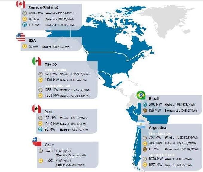 2016年全球可再生能源最低报价盘点:光伏2.42美分/KWh、风电3.0美分/KWh