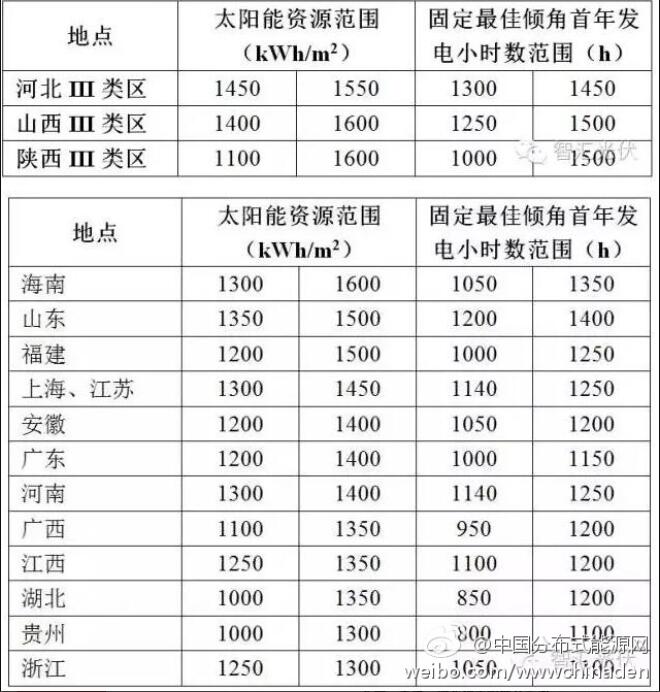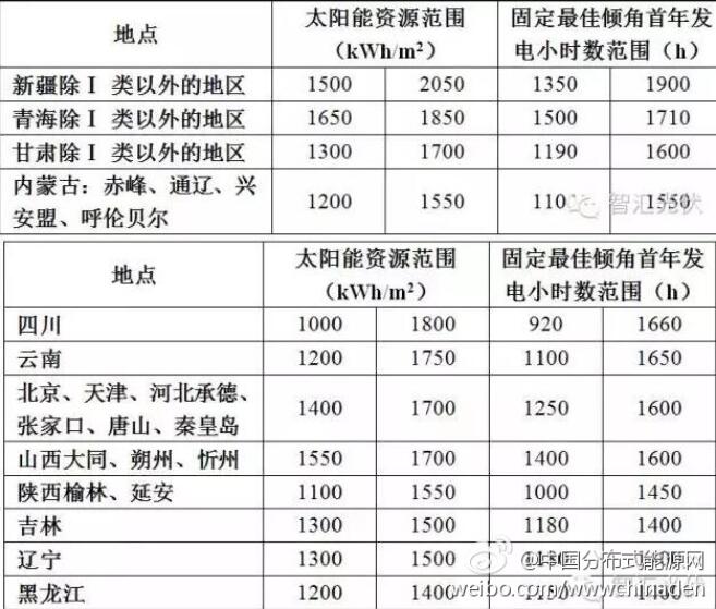 看全国太阳能资源谱图,分清光伏电价区及太阳能资源