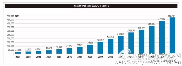 全球风能理事会发布《全球风电统计数据2016》