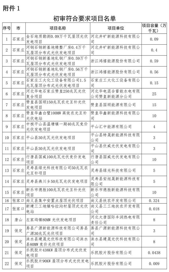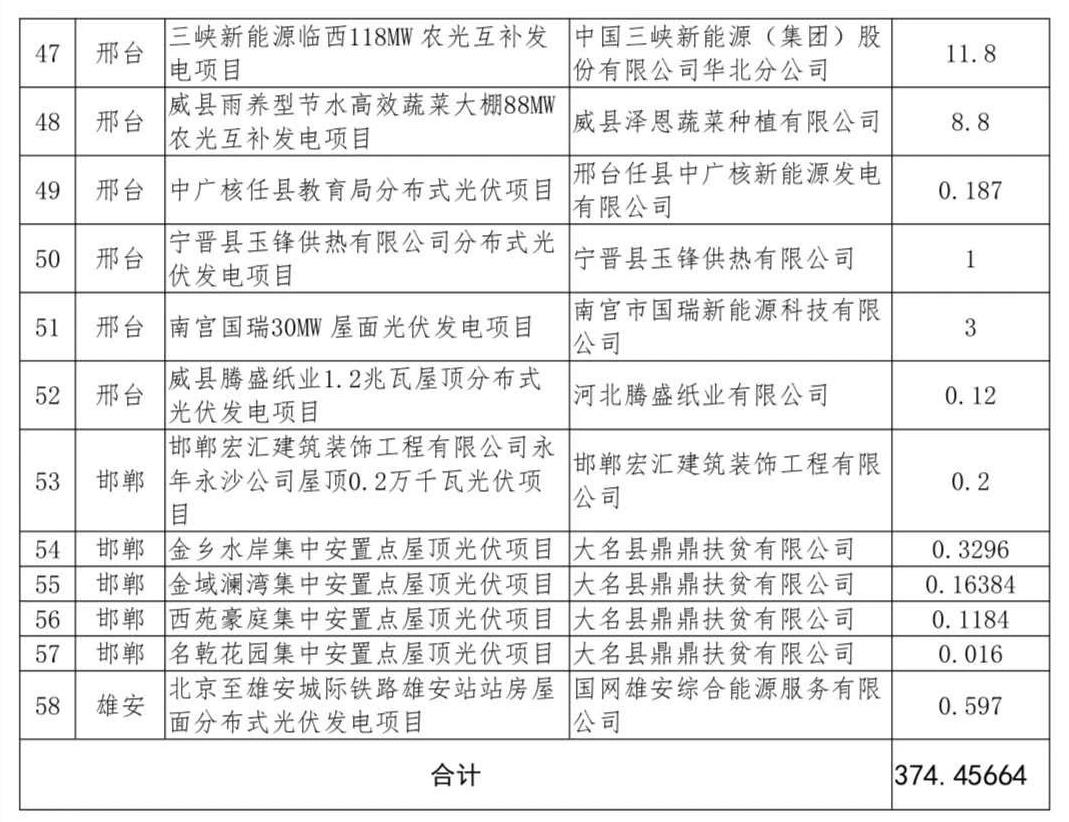 近日,河北省2020 年光伏发电国家补贴竞价项目名单公示,共有58个项目,3.74GW规模通过河北省初审,参与全国光伏项目竞价。