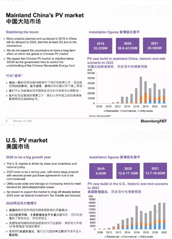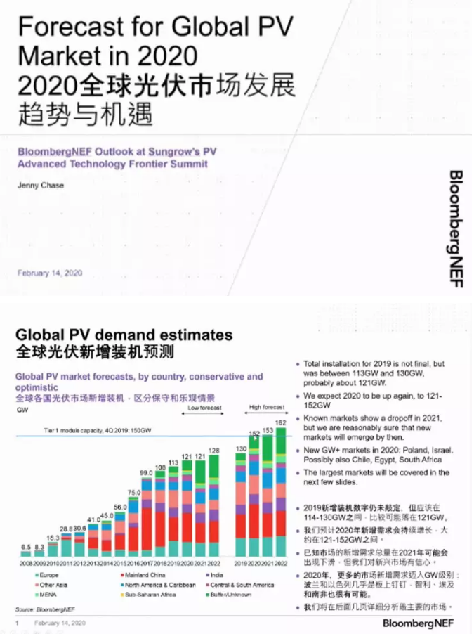 “阳光线连,共赢未来”!今天在阳光电源主办的在线“PAT2020爱光伏一生一世研讨会”上,彭博新能源财经全球光伏首席分析师Jenny Chase 对全球光伏市场发展趋势与机遇进行了分享和探讨。其中包含对全球目前前五大光伏国家市场的具体分析。