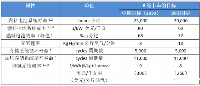 美国能源部先进卡车技术之氢燃料长途卡车的技术目标